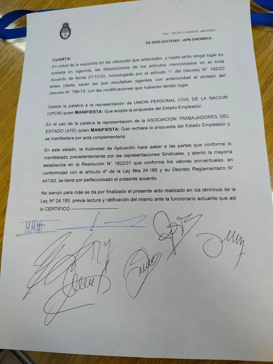 Por su parte, UPCN aceptó la propuesta, según pudo confirmar la Agencia Noticias Argentinas de fuentes oficiales.